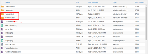 2. Browse the folder for your WordPress site to locate /wp-content/ and /wp-includes/ folders.