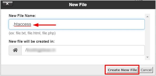 5. Enter the name .htaccess under the New File Name field and click the Create New File button.