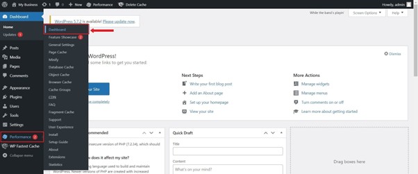 2. Select the Performance option from the navigation menu and click Dashboard.