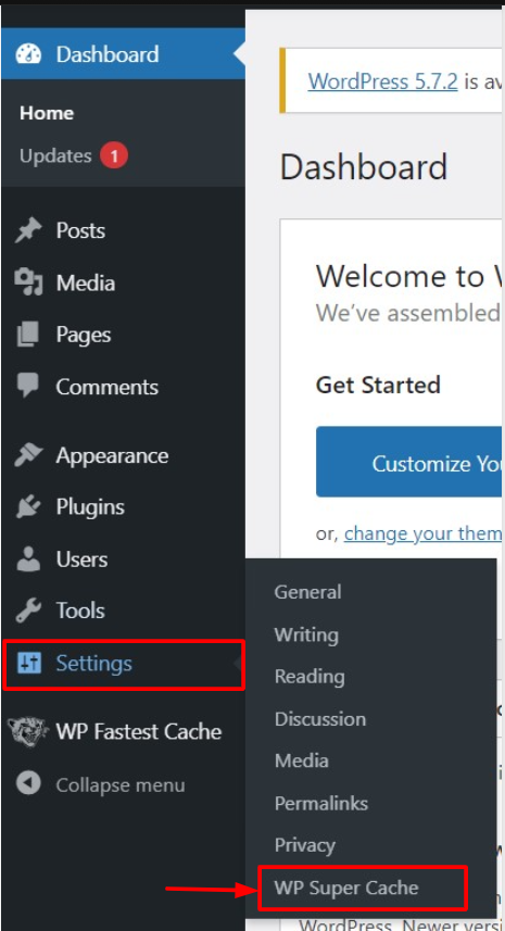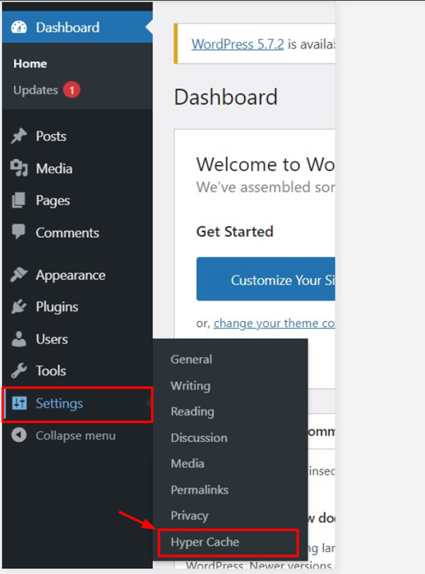 2. Go to Settings in the navigation menu and select Hyper Cache.