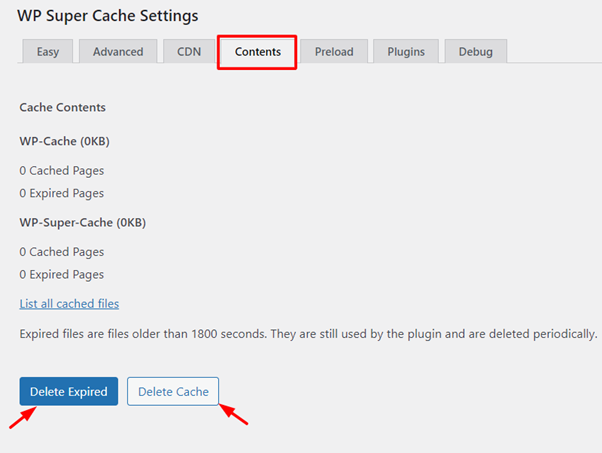 Here, you will see all the cached data of your website. The cached files of cached and expired pages will appear.