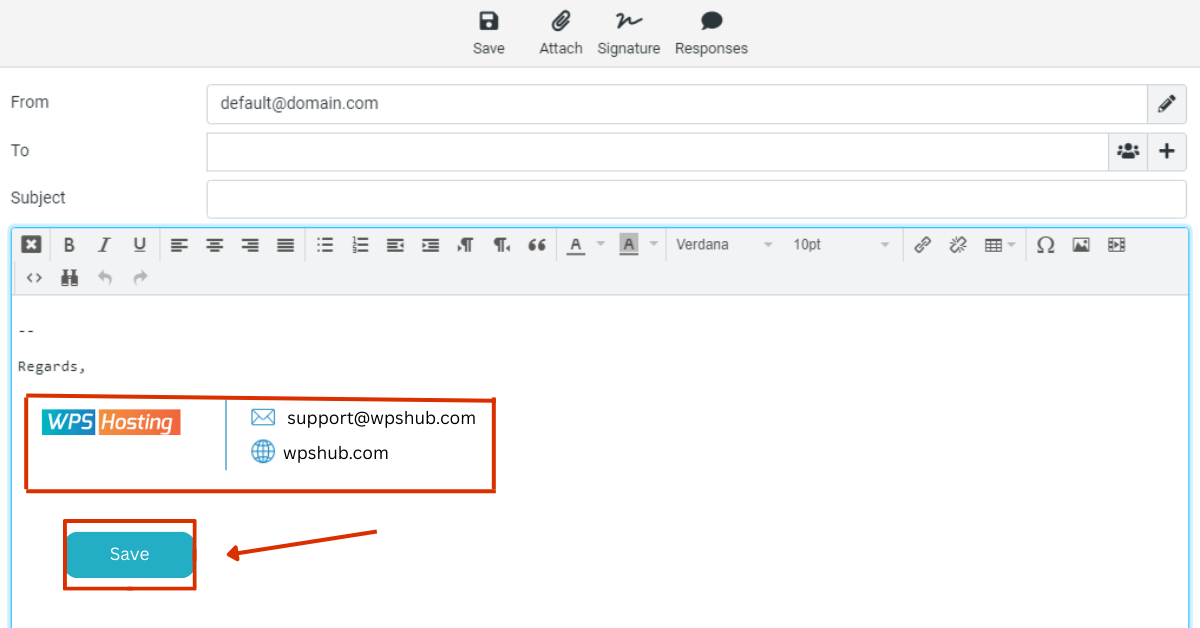 A message: Successfully saved will flash. It means the Signature was added to the selected identity of your Webmail account.