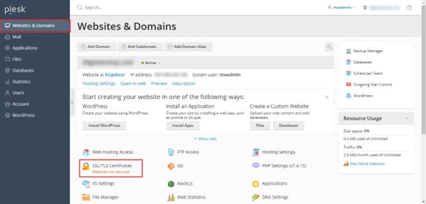 2. Go to Websites & Domains and click on SSL/TLS Certificates.