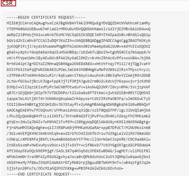 Scroll down and see the generated CSR and Private key. They would look like this:
