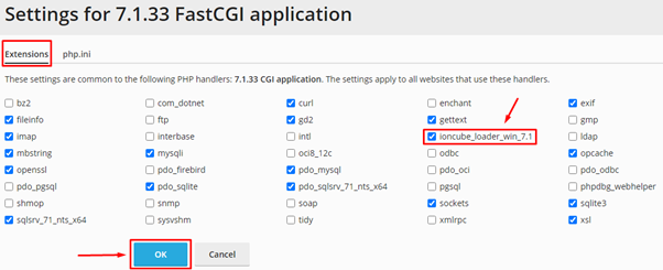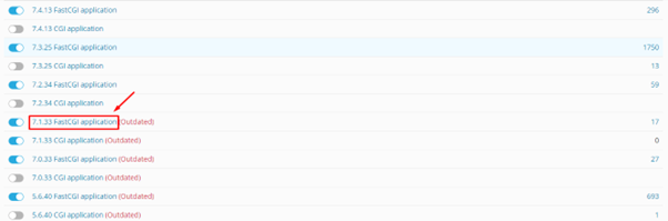 4. Click on any lesser PHP version other than 12.5. For example, we have clicked on the 7.1.33 FastCGI application.