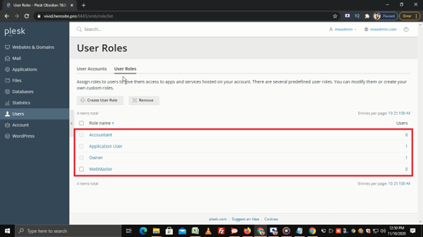 Steps to create and manage user roles in Plesk: