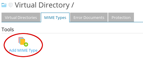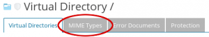 4. The Virtual Directory page will appear. On it, click the MIME Types tab.