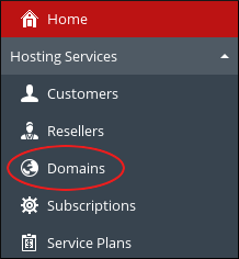 2. In the left sidebar menu under Hosting Services, click on Domains.