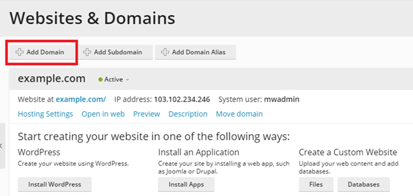 You can host multiple websites with separate domain names on your control panel by using an addon domain. This addon domain is a domain that points to a subdirectory within your primary Domain. The addon domain will act as an independent domain, with no references to the primary domain. For example, if mwadmin.com is your primary domain then example.com would be your add on domain.