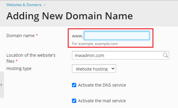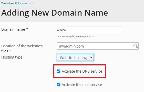 - If you’re using DNS service provided by your hosting provider then tick the option Activate the DNS service. If you’re using DNS service provided by your registrar then untick this option.