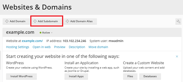 So in this way you can create Addon domain and Subdomain in Plesk.