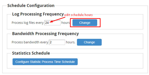 4. Scroll down to the Schedule Configuration section and edit the schedule hours for the Log Processing Frequency.