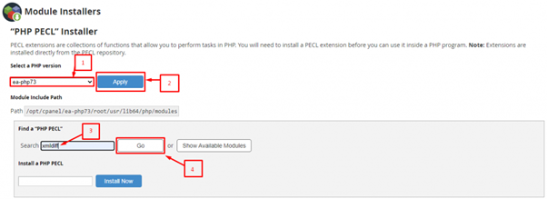 5. Select an appropriate PHP version from the dropdown list and click Apply to get a compatible extension of the XMLDiff module.