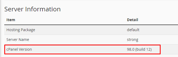 /usr/local/cpanel/cpanel -V 98.0 (build 12)
