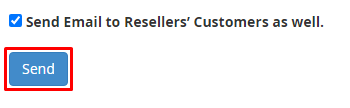 Step 5: Now scroll down to the end, select the check box Send Email to Resellers’ Customers as well if you also need to email the resellers’ customers, and click on Send.