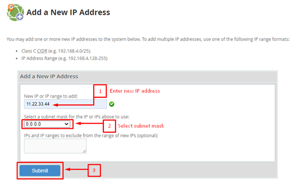 Routing an IP address to your server is not enough. To make it usable, you will have to add it to your server. This tutorial describes how WHM users can add a new IP address to a cPanel server.