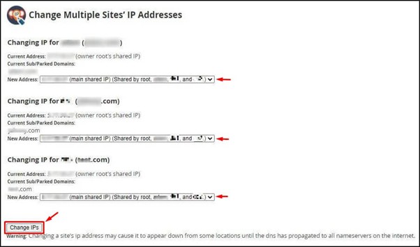 In some cases, you may have to add a new IP address to a server or change the shared IP address of your server. You do not have to update all of these accounts one by one. WHM users can change IP addresses for multiple sites or accounts at once.