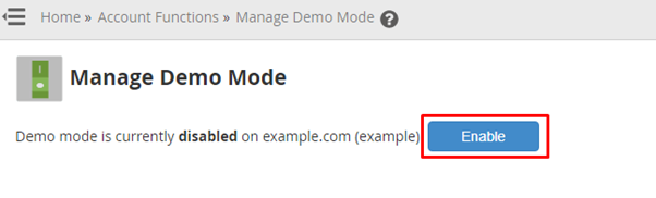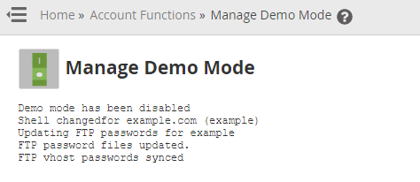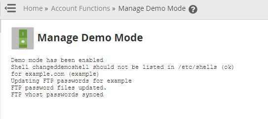WHM will enable the demo mode for the account and configure its settings accordingly.