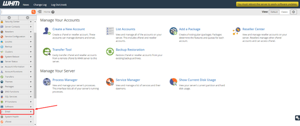 1. Log in to your root account of WHM.