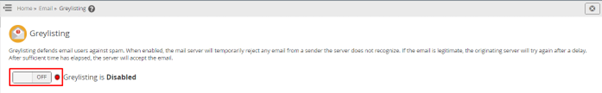 By default, the Greylisting will be disabled as the button is OFF.