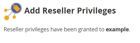 The system will display a confirmation message to inform you it has granted the Reseller privileges to the account.