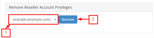 2. Select the reseller account from the Remove Reseller Account Privileges drop-down list and click Remove.