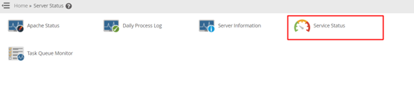 The Service Status application will allow you to check up on the current state of the services running on your server.