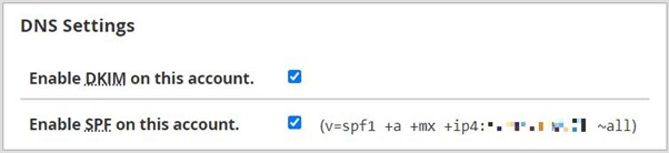 - DNS Settings: It allows you to enable DKIM and/or SPF on the cPanel account.