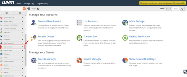 Logging in to your MySQL account allows you to access and manage your server’s databases. The MySQL account belongs to a different application than WHM. Thus, your WHM root account credentials will not work for logging in to MySQL as it has its own username and password. However, you can change the login details like MySQL root password to this account with the WHM panel.