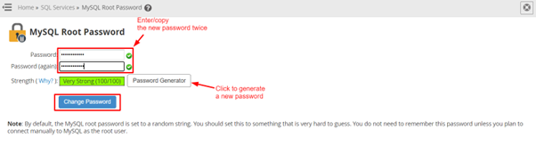 The system will assign the new password for your MySQL root account. The next time you log in to your MySQL root account, you will have to use the new password.