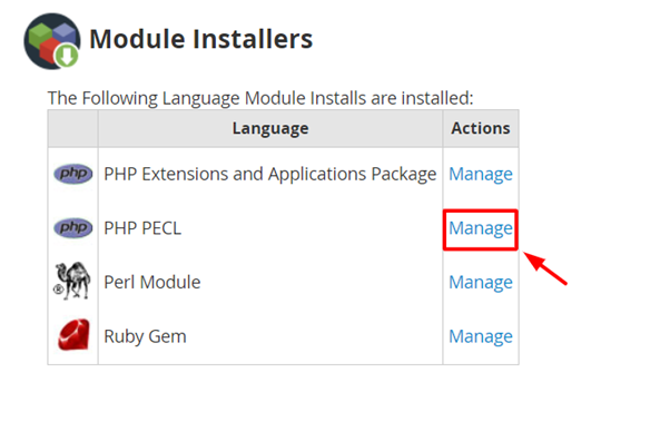 4. Click on Manage beside PHP PECL.
