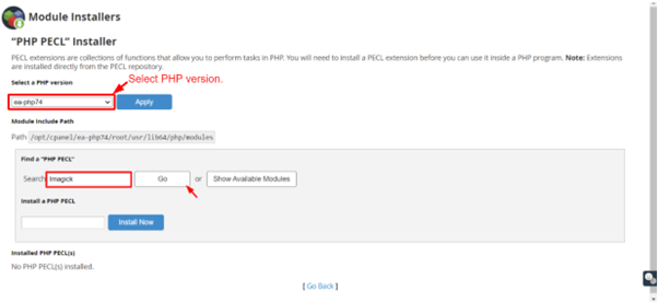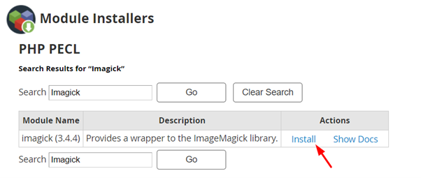6. Type “Imagick” in the Search box and click the Go button.