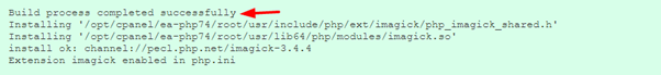 The installation process will instantly commence. After a few seconds, the system will complete the installation of Imagick PHP PECL and display a success message at the end.