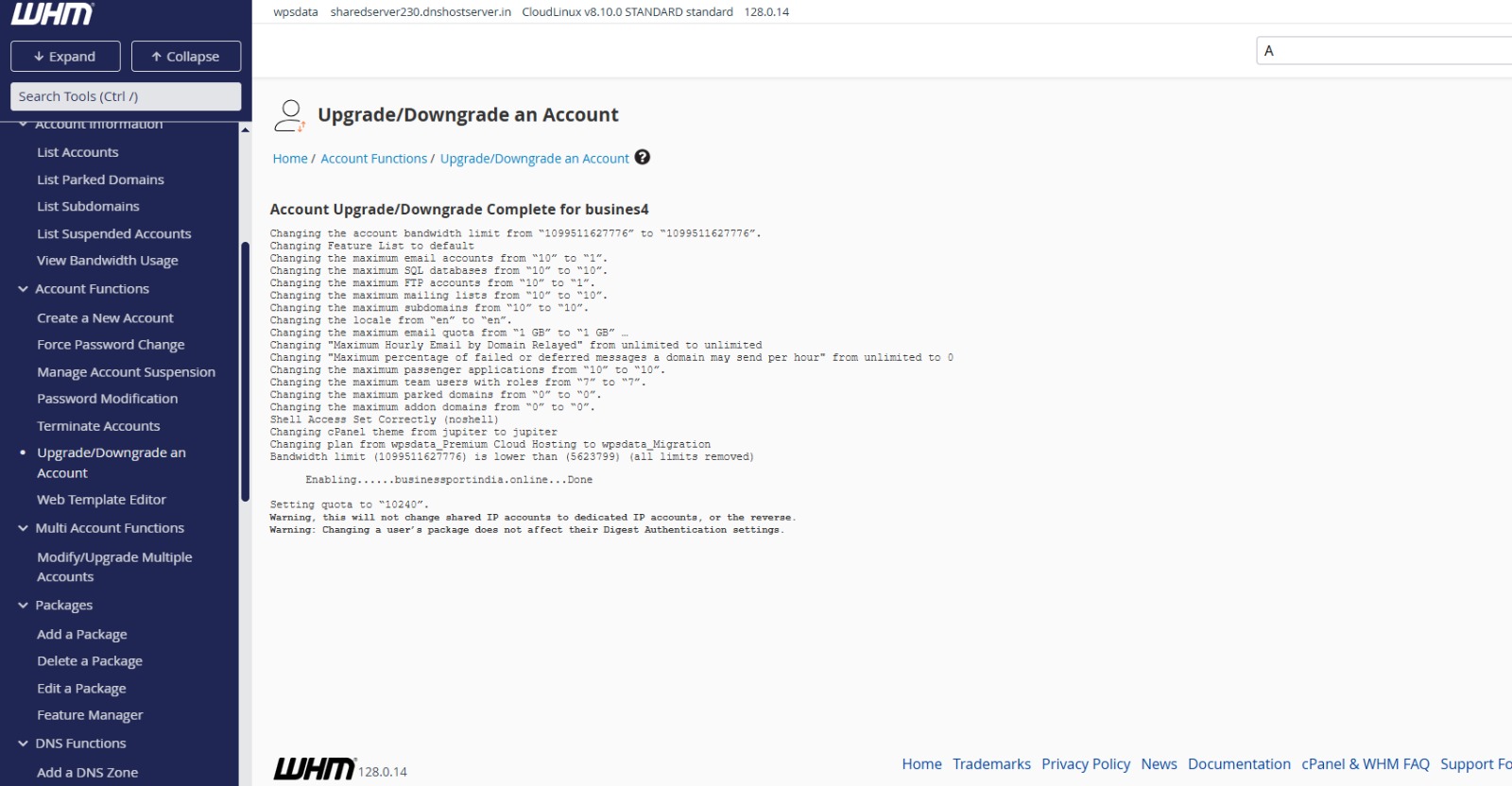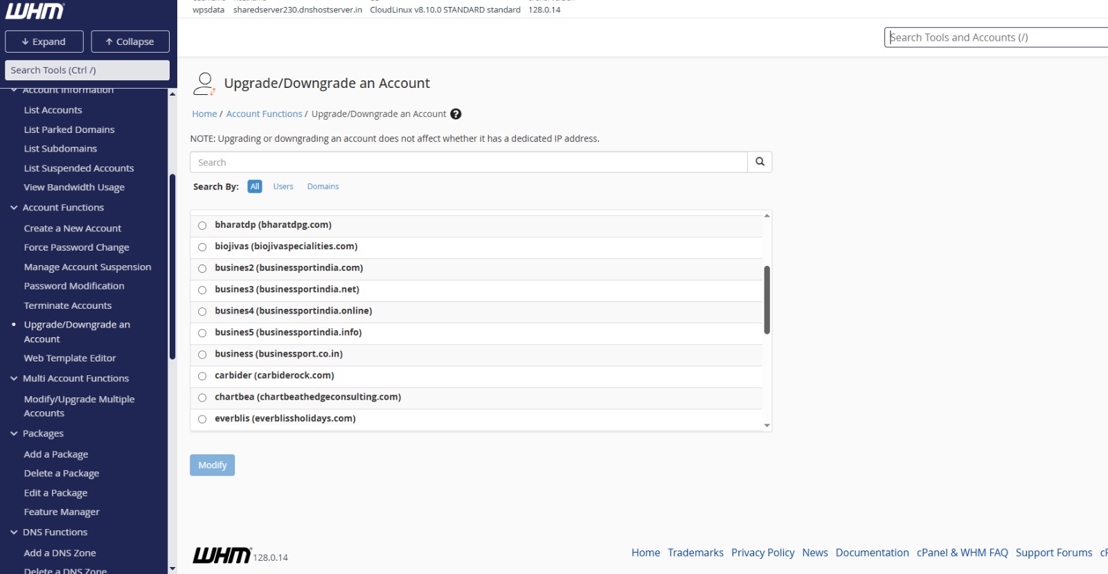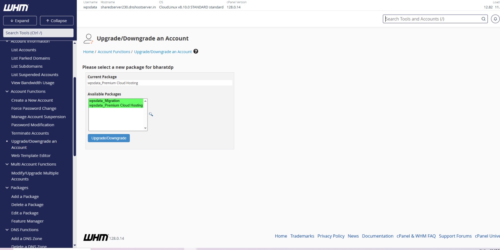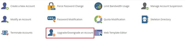 You can upgrade or downgrade any account in WHM with simple steps. Below mentioned are the steps for upgrading or downgrading an account in WHM: