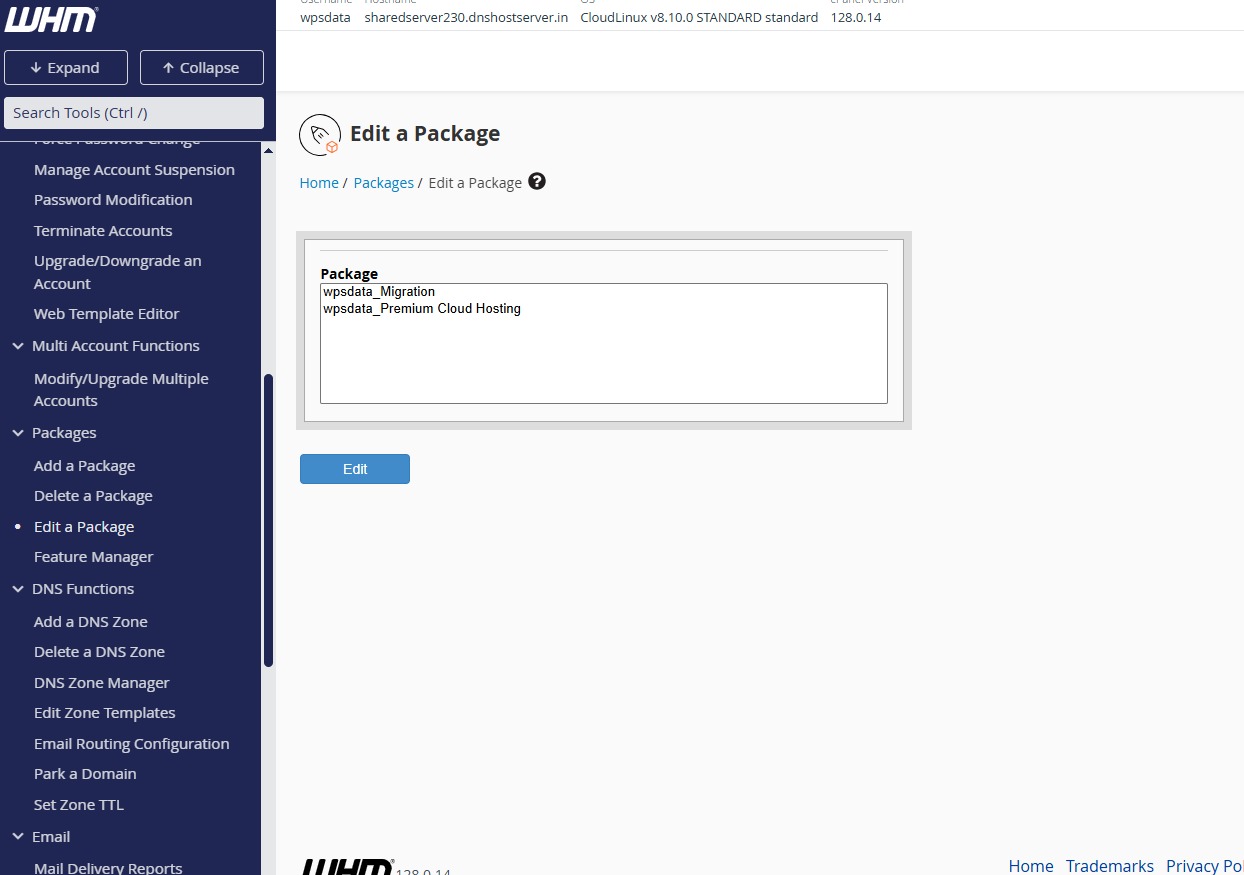 WHM enables you to create a package so that it is easy to manage the cPanel accents. Select the package from this section.