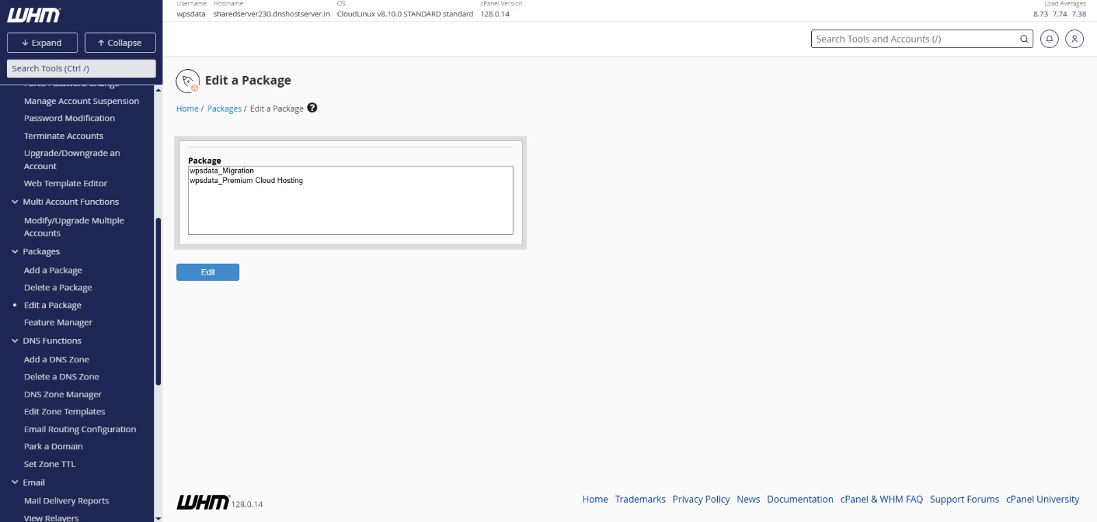- Click on the option ‘Edit A Package’ present under ‘Packages’ on the left side menu.