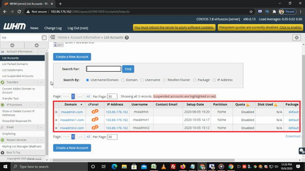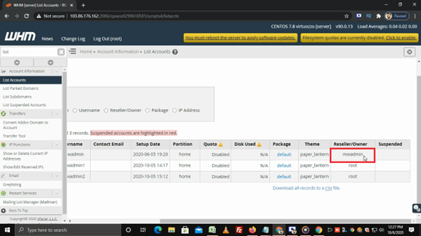 - In the Reseller/Owner column, you can see the root owner is assigned to this account.