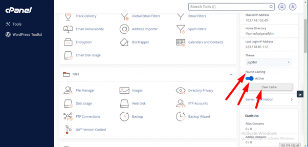 Also, in cPanel, you have the option to Activate and Clear Nginx Cache as shown in image given below: